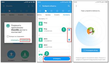 Как передать контакты с помощью Share Me
